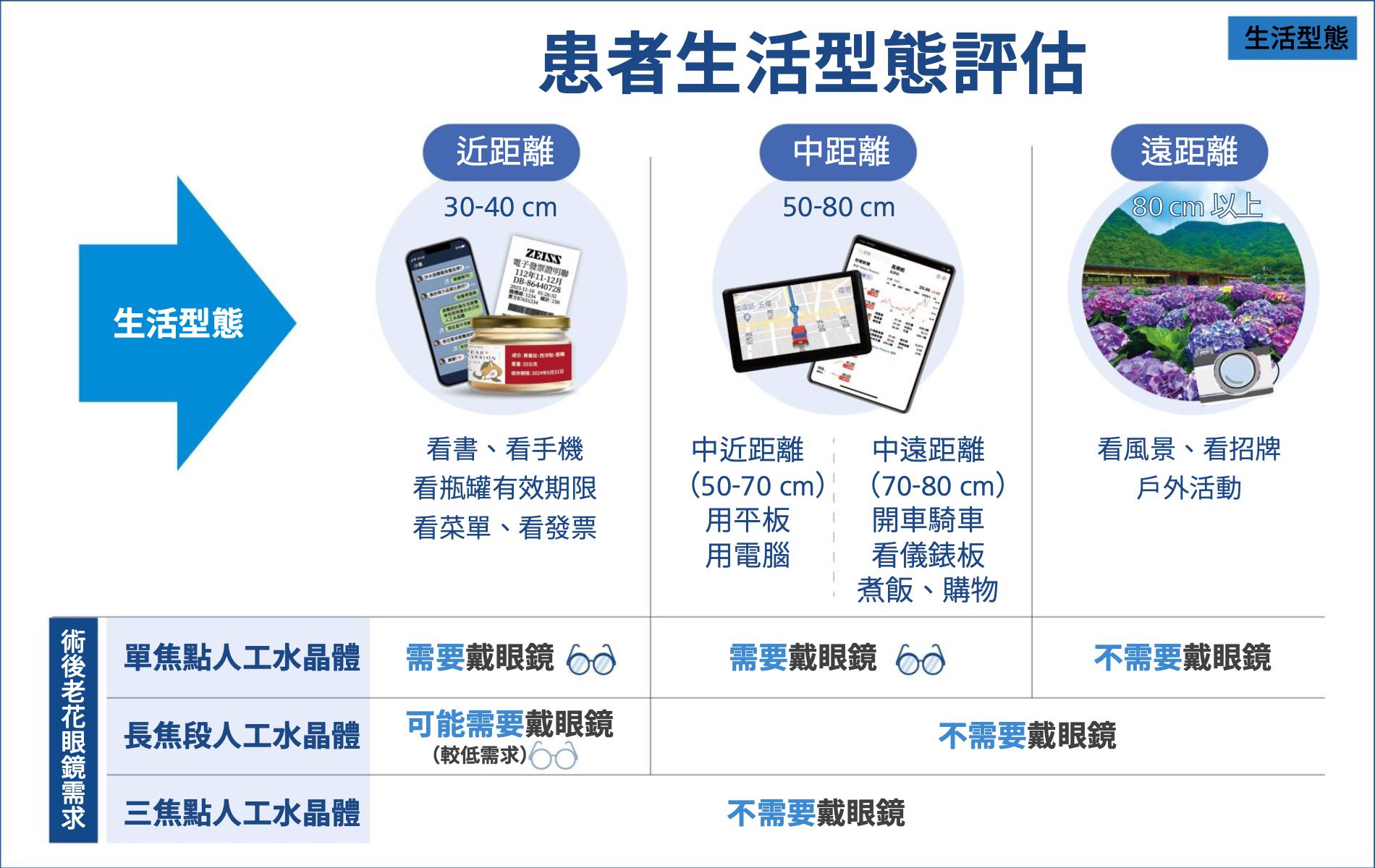 ▲「德國蔡司老花專家」會根據患者的眼睛狀況、生活習慣、工作性質建議適合的老花人工水晶體。