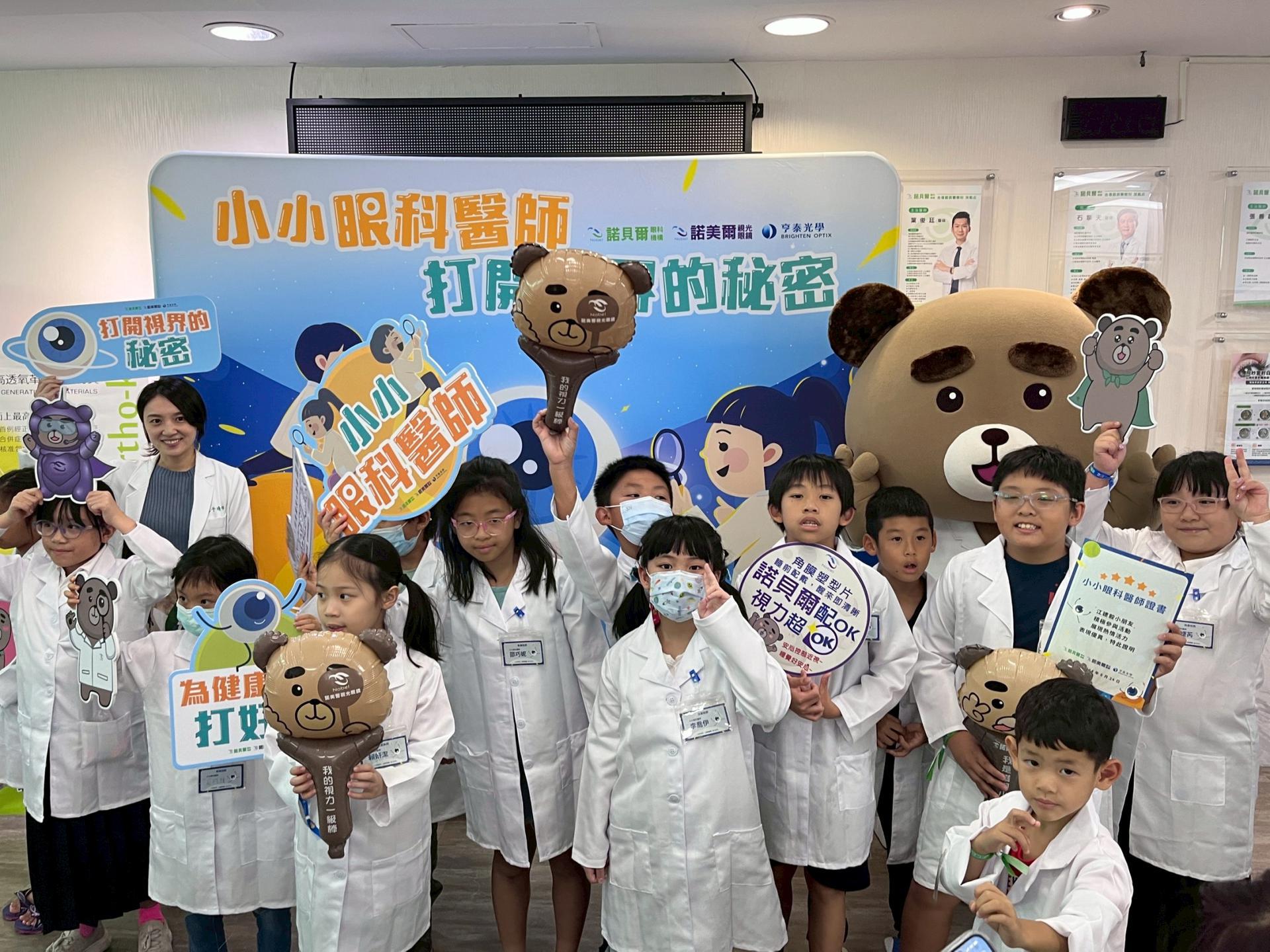 為培養孩子主動護眼的意識,亨泰光學攜手諾貝爾眼科診所巡迴舉辦「小小眼科醫師體驗營」,讓孩童穿上白袍,透過掛號、視力檢查、驗光及眼疾模擬四大關卡,以遊戲化方式體驗眼科就診流程。現場醫師與驗光師親自引導操作設備,並安排孩子戴上模擬眼疾的特殊眼鏡,體驗視力模糊的不便。一名六年級學生驚呼:「原來看不清楚這麼辛苦!以後要更保護眼睛。」