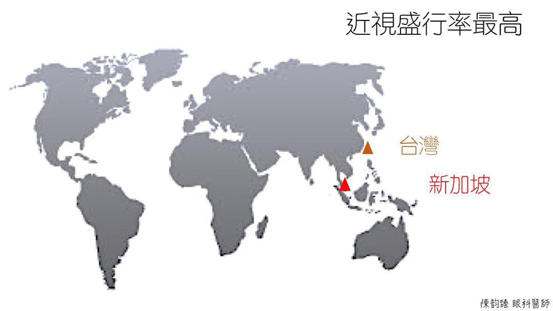 台灣近視有三項特點,發生早、盛行率高、高度近視比率高。