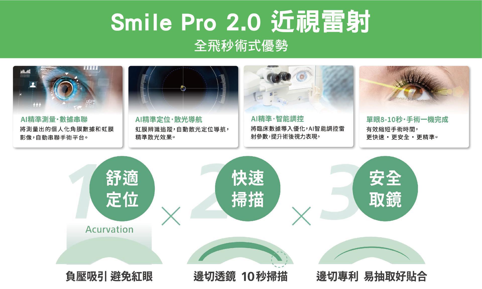 台灣更是亞太地區第一個引進新一代Smile Pro 2.0 全飛秒近視雷射的國家,搶先韓國發表升級,顯示台灣在眼科醫療科技上的領先地位,民眾無須出國,即可享有世界級醫療服務。