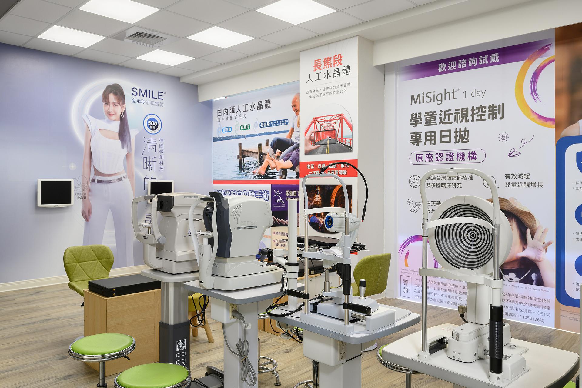 視力保健、角膜塑型驗配、近視控制日拋、近視管理鏡片及弱視訓練。