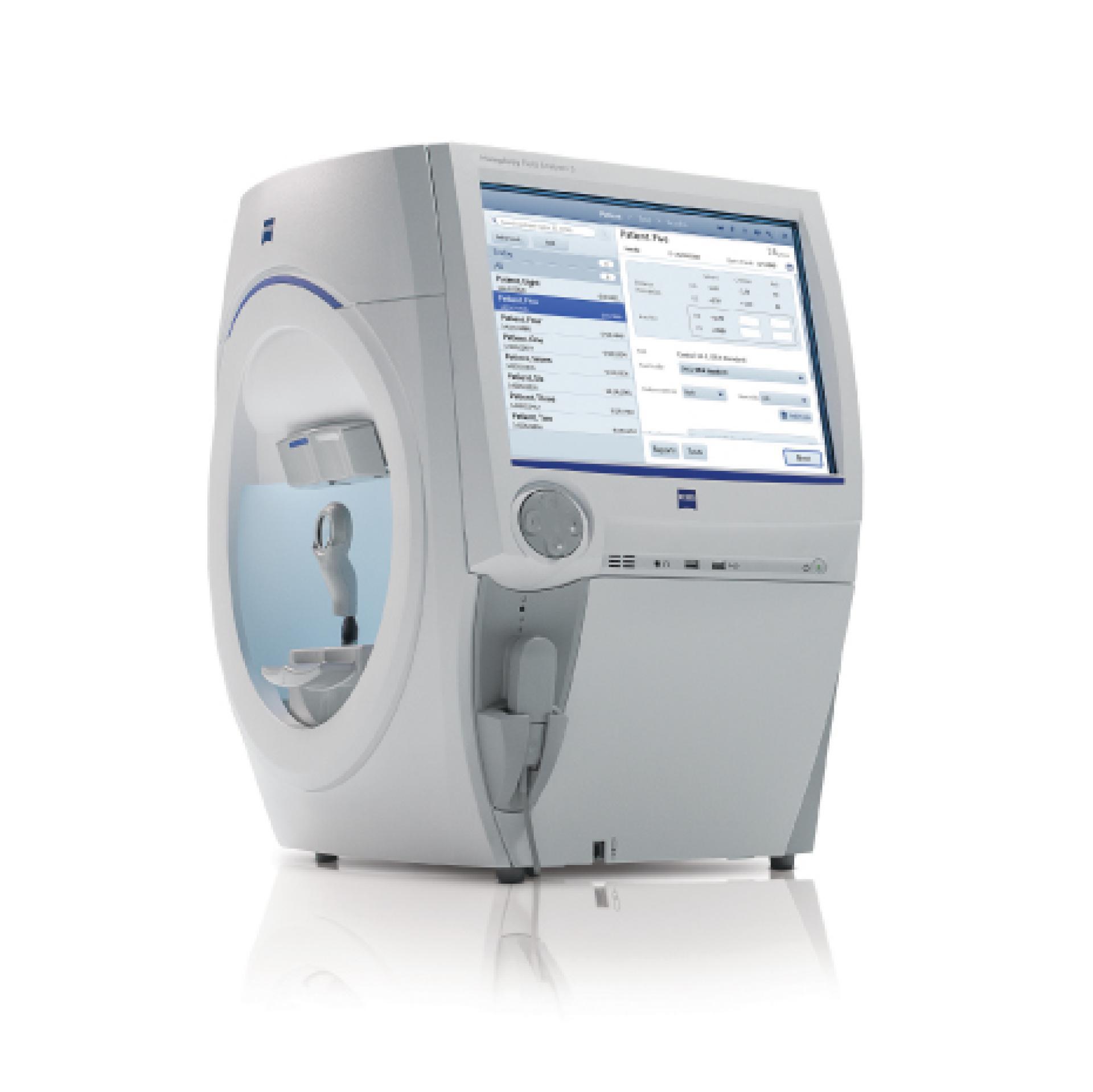 自動眼球追蹤、快速檢測視野,早期青光眼偵測,經由電腦系統分析目前缺損狀況,可連續性追蹤比較青光眼及視網膜疾病病況,檢查結果經由網路數位圖像即時系統 連結呈現給醫師便於解說。