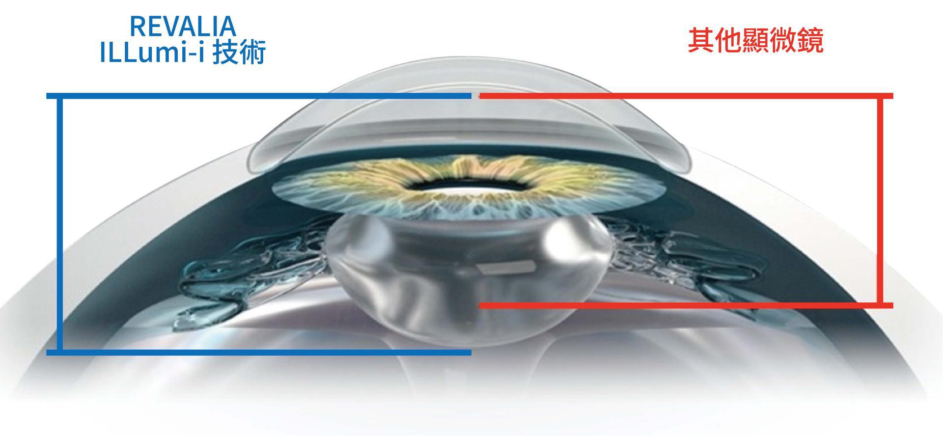 專利光源設計提供每個手術案例選擇最合適的光源,搭配ILLUMIN-i技術,即使患者移動或虹膜擴張不完全,也能維持穩定一致的手術視野,紅光反射比傳統顯微鏡更穩定。