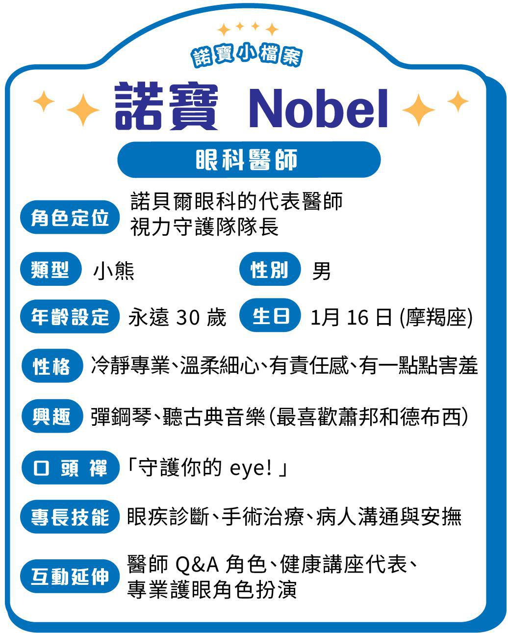 諾寶,是一位沉穩可靠的眼科醫師。