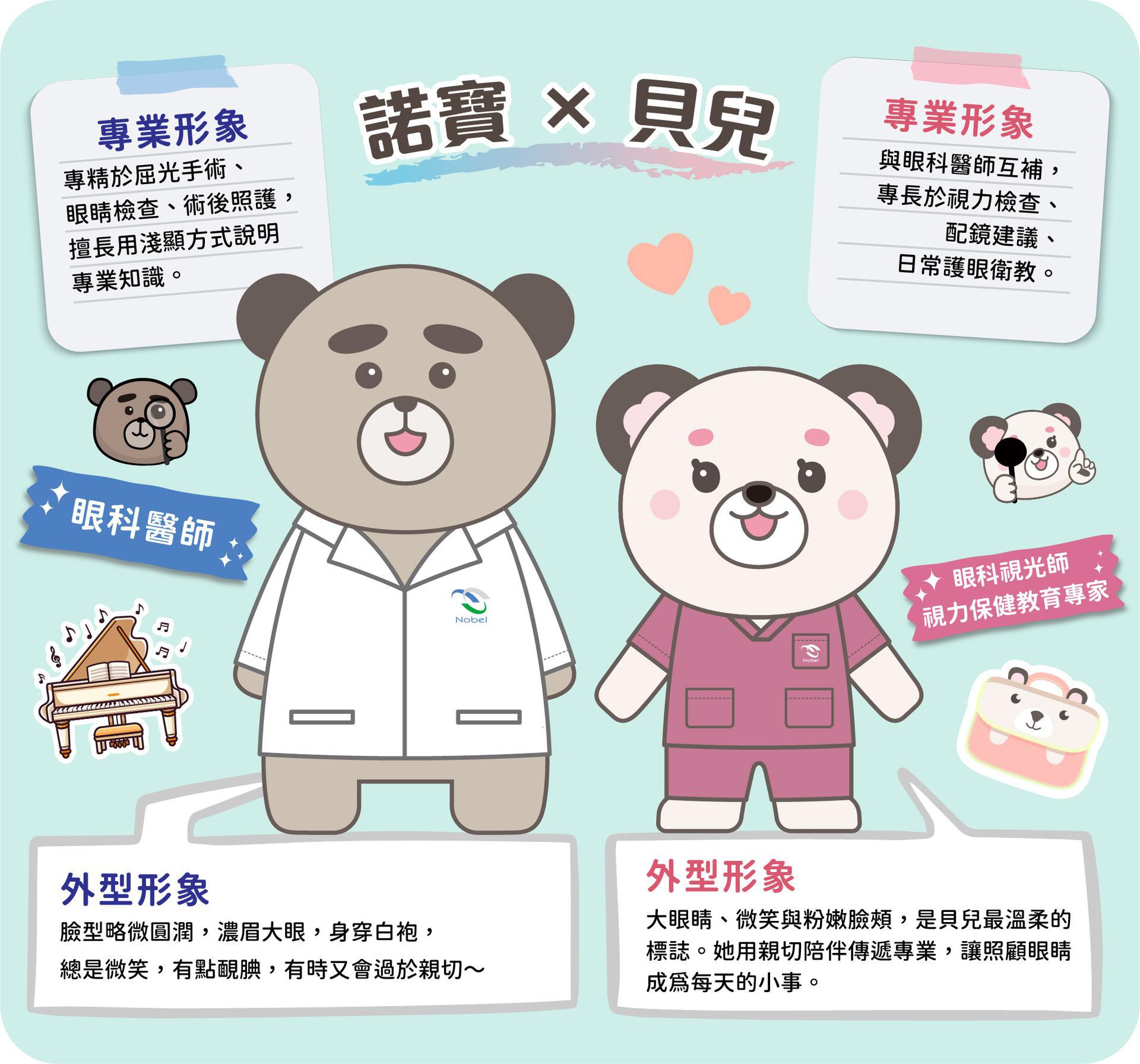 諾貝爾眼科特別為吉祥物諾寶與貝兒