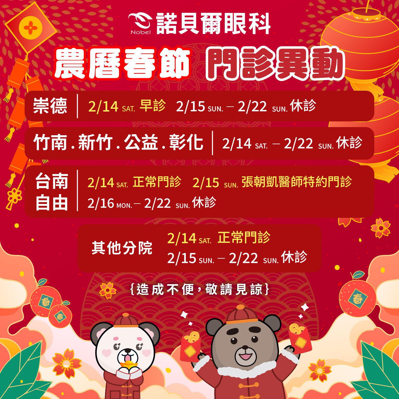 過年如需至 #諾貝爾眼科 看診或手術的朋友們~