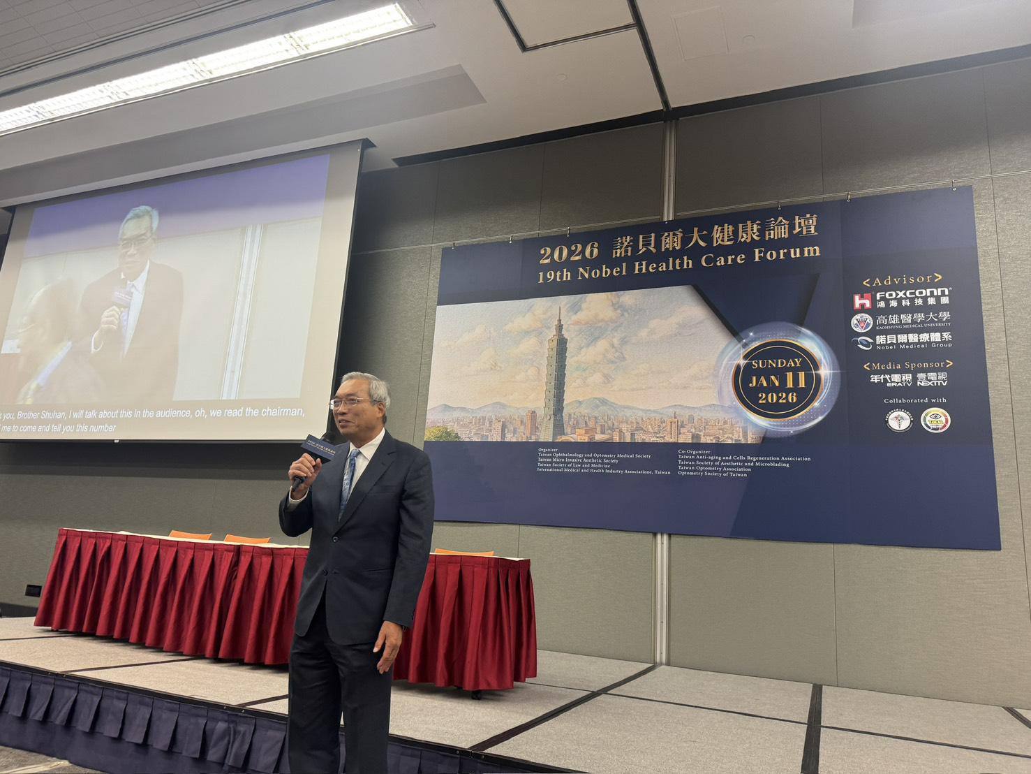 【台北訊】由諾貝爾醫療體系、鴻海科技集團及高雄醫學大學共同指導,並由台灣眼視光醫學會、台灣醫事法律學會、台灣微整形美容醫學會、台灣國際醫療暨健康產業協會聯名主辦的「2026諾貝爾大健康論壇」,將於2026年1月11日(日)在台北國際會議中心(TICC)盛大舉行。論壇以「眼視光暨智慧醫療」與「美容暨抗衰老醫療」為雙核心主軸,匯聚來自兩岸與國際的醫學、科技與產業專家,深入探討智慧醫療的臨床應用、產業趨勢與法規治理,預計吸引超過1,200位醫師與大健康產業人士共襄盛舉。