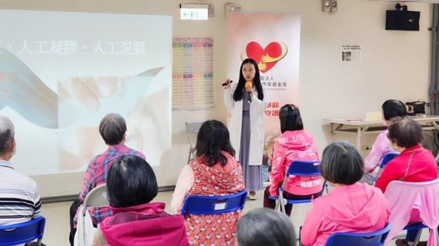 為了強化年長者健康意識、建立預防勝於治療的觀念,群馨基金會特別與新北市市敏動齡健康關懷協會合作,商請國內首屈一指的眼科醫療機構-諾貝爾眼科的101分院副院長呂宥萱醫師,針對好發於年長者群體的「乾眼症」講解說明,讓里民們了解乾眼症症狀、成因、治療及如何預防保健。