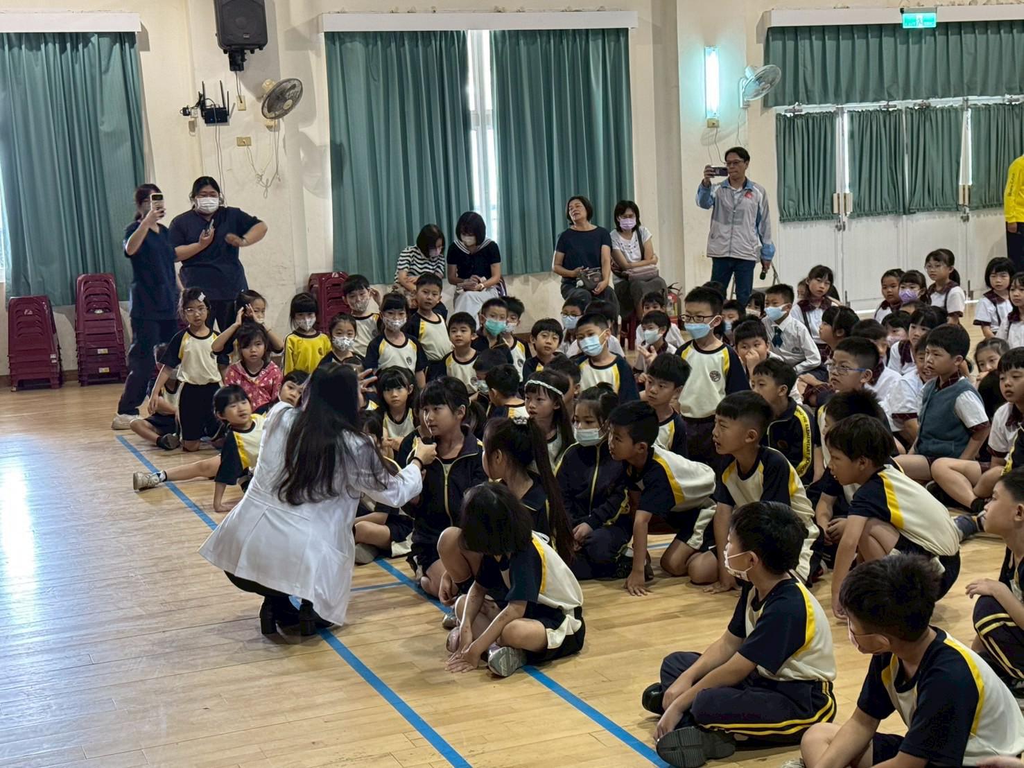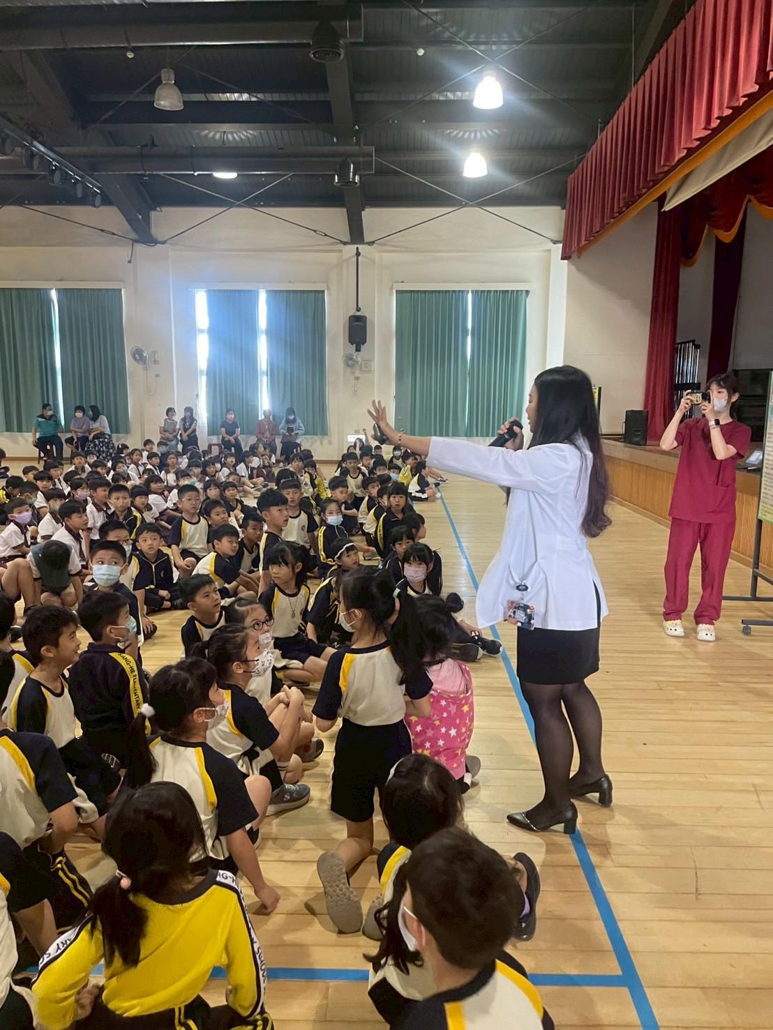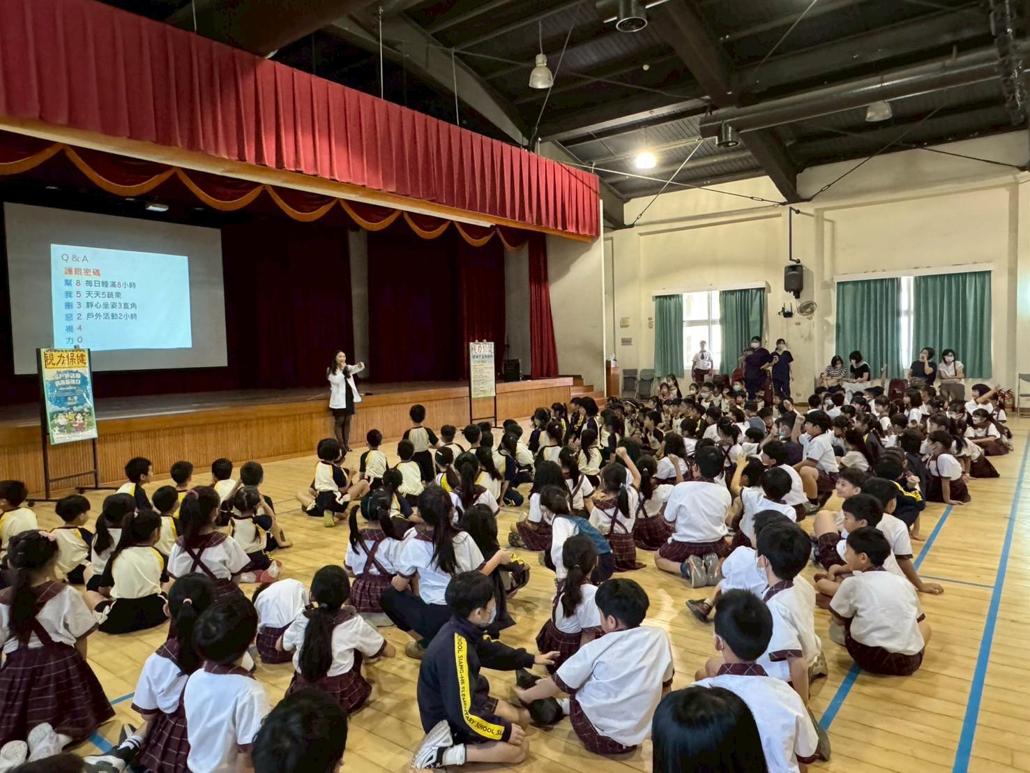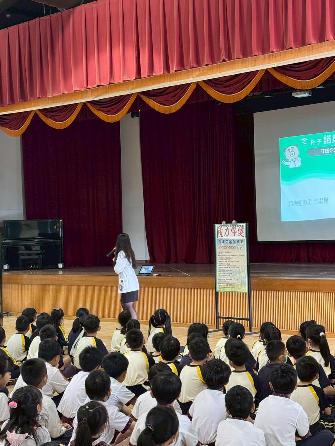 利用國小週會的短暫時間,為孩子們進行視力保健宣導!