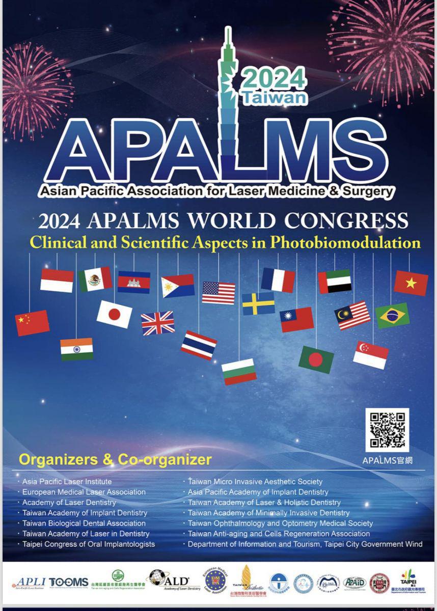 亞太雷射醫學會APALMS(Asia Pacific Association for Laser Medicine and Surgery )2024 年會於上星期五到星期日在台北舉辦。亞太及歐美共24國來自不同臨床科別的醫師們共聚一堂,分享生醫光電的臨床經驗。