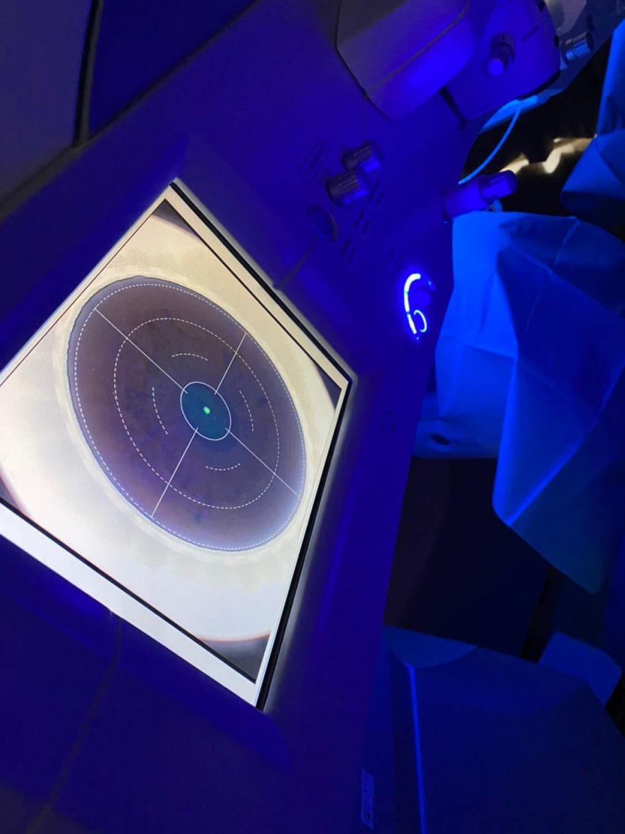 原本因為已經看過很多資訊,做過功課了,所以沒有很緊張。但躺上手術檯後,還是開始有點擔心。但我覺得張朝凱醫師真的很棒,他在手術過程中用很鼓勵式的方式跟我們講話、告訴我們該怎麼配合,減少了我的焦慮。手術過程,真的超乎我想像的簡單。動手術的那眼,看著上方一個綠點,眼睛不要動。倒數 23 秒後,雷射已經在角膜內層切割出要移除的部分。接下來就是要眼睛表層開一個 2mm~4mm 小洞,從那裏抽出已經被雷射切割的角膜部分。