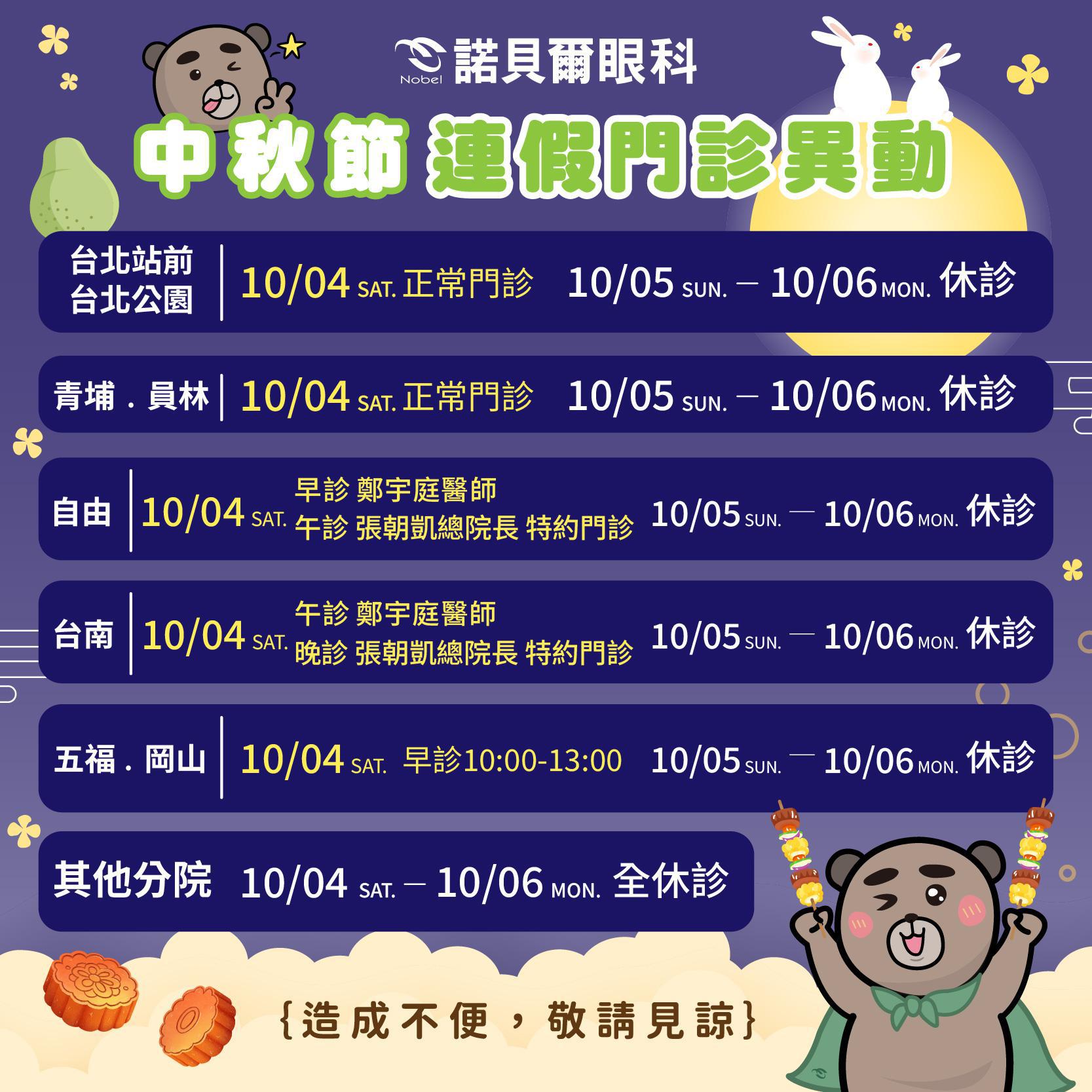 假期如需至諾貝爾眼科看診或手術的朋友們~