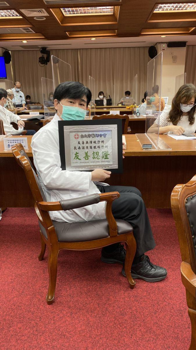 2021年8月18日諾貝爾醫療集團眼科機構及醫美機構張朝凱總院長代表集團獲頒「友善診所認證」