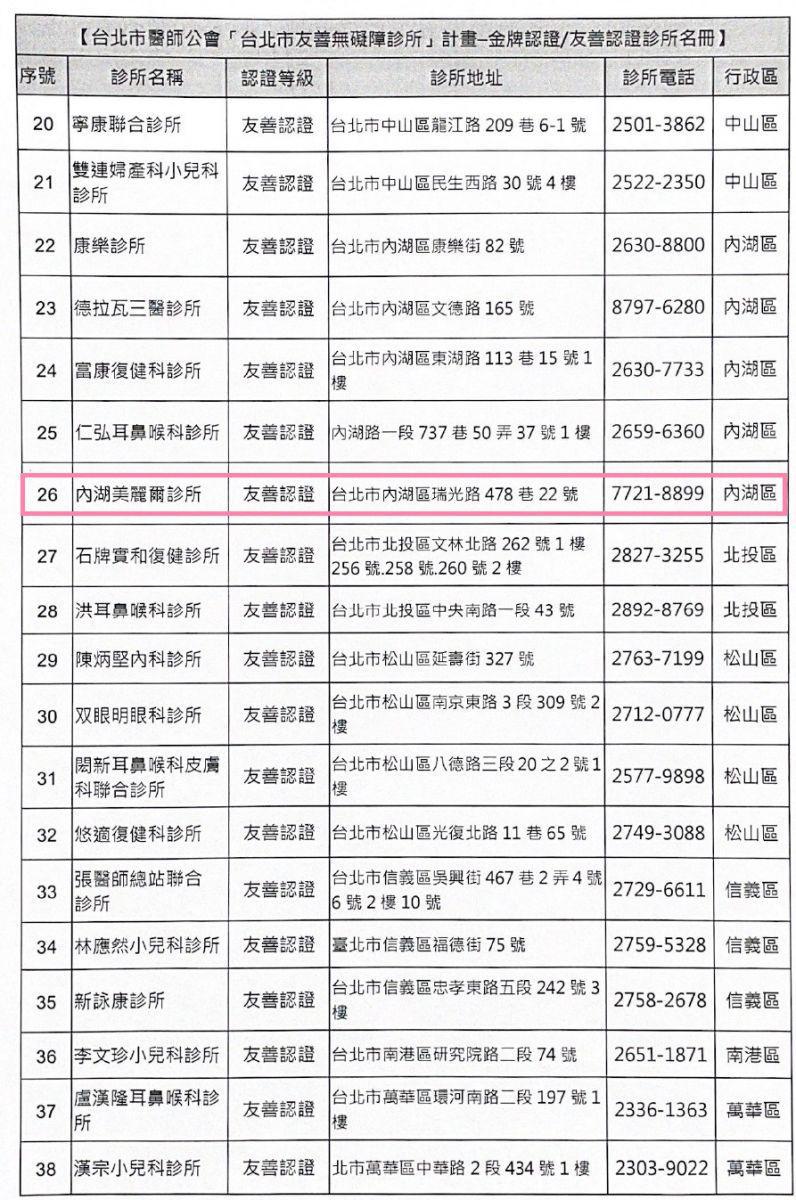 台北市醫師公會力推「友善無障礙診所計畫」,18日在記者會宣布38家診所取得認證!