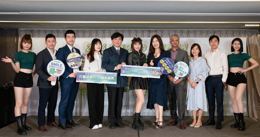 諾貝爾醫療體系創辦人張朝凱醫師(左五)、陳美齡醫師(左七)攜手應援女神峮峮(中)連袂出席記者會,共同宣示維護好視力的重要性。諾貝爾眼科/提供