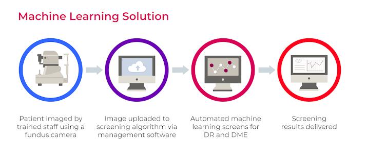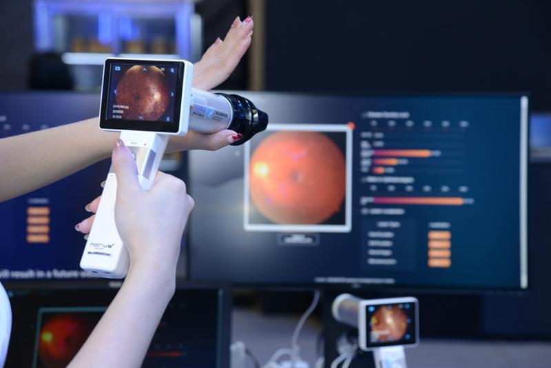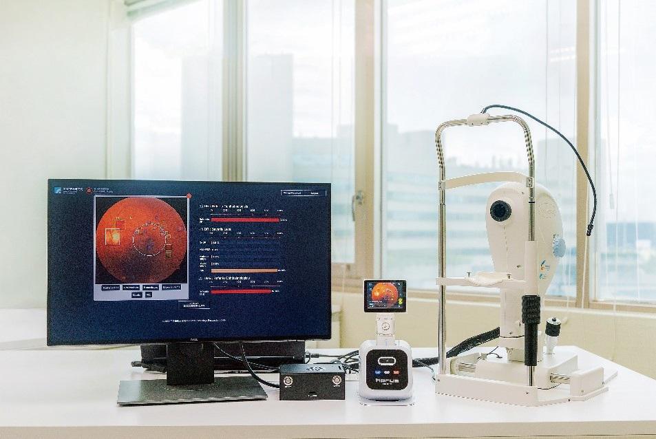 技術員進行眼底攝影後,將圖像經 AI 自動化診斷後,立即回傳診斷結果,並告知是否需要轉診或複診。