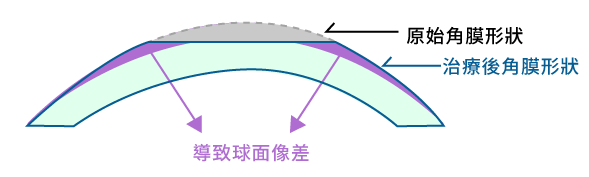 可調整角膜的週邊弧度,呈現術後角膜的非球面型態設計,並矯正高階像差中的球面像差問題,提升夜間視力及降低夜間眩光∘