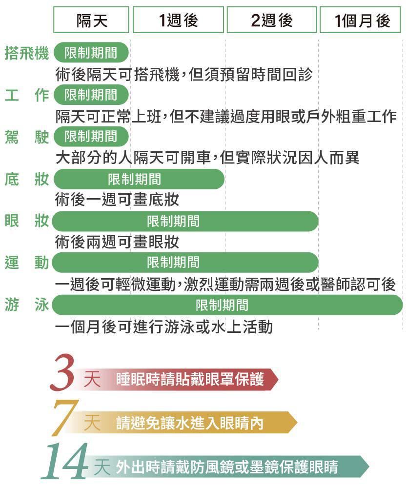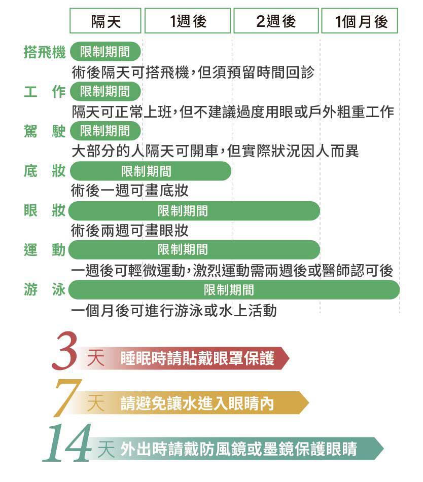 *乾眼:術後暫時性乾眼為正常現象,依照個人術前乾眼狀態不同,恢復期可能延長。