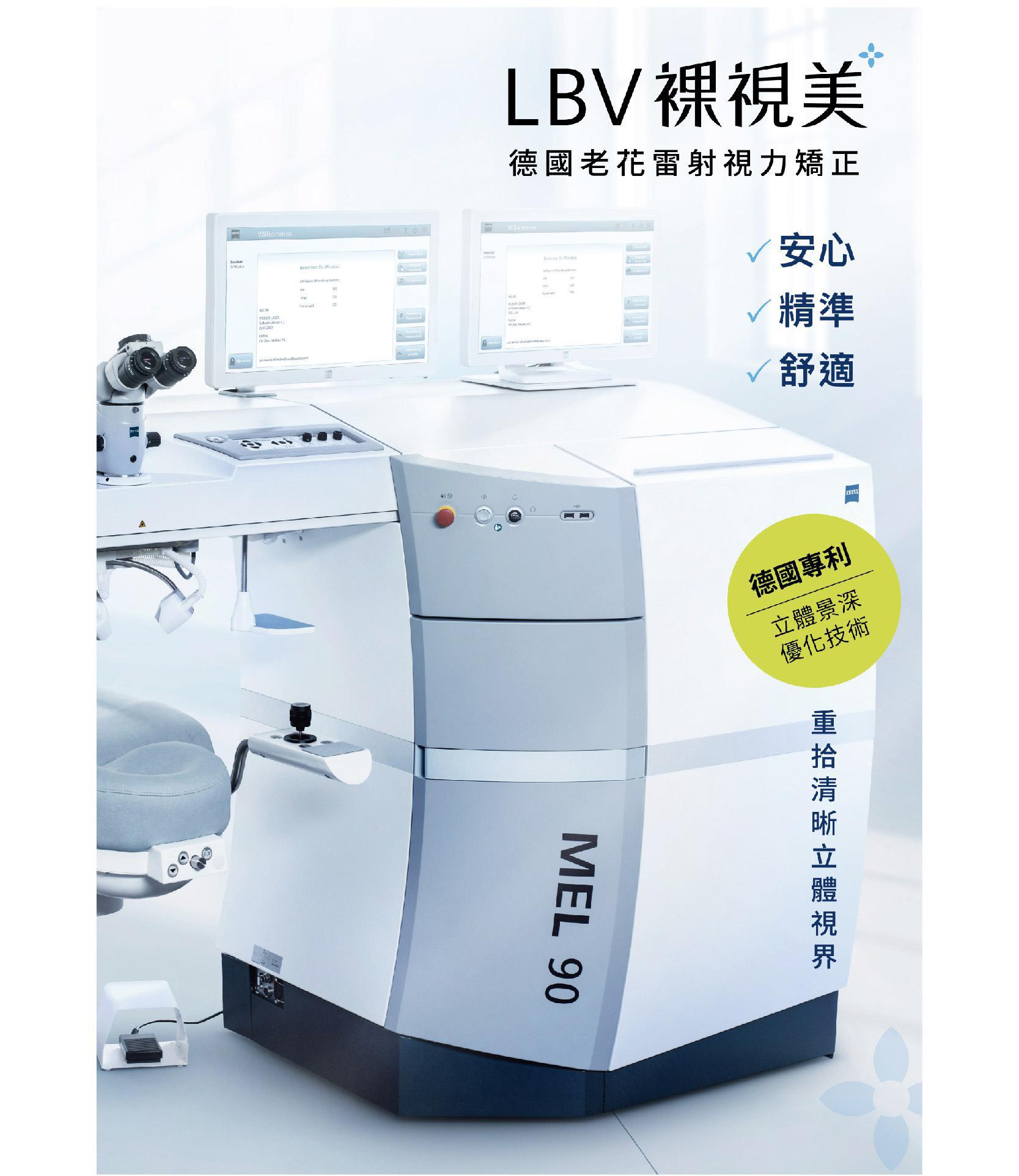 「LBV裸視美老花雷射」源自百年德國光學大廠研發,