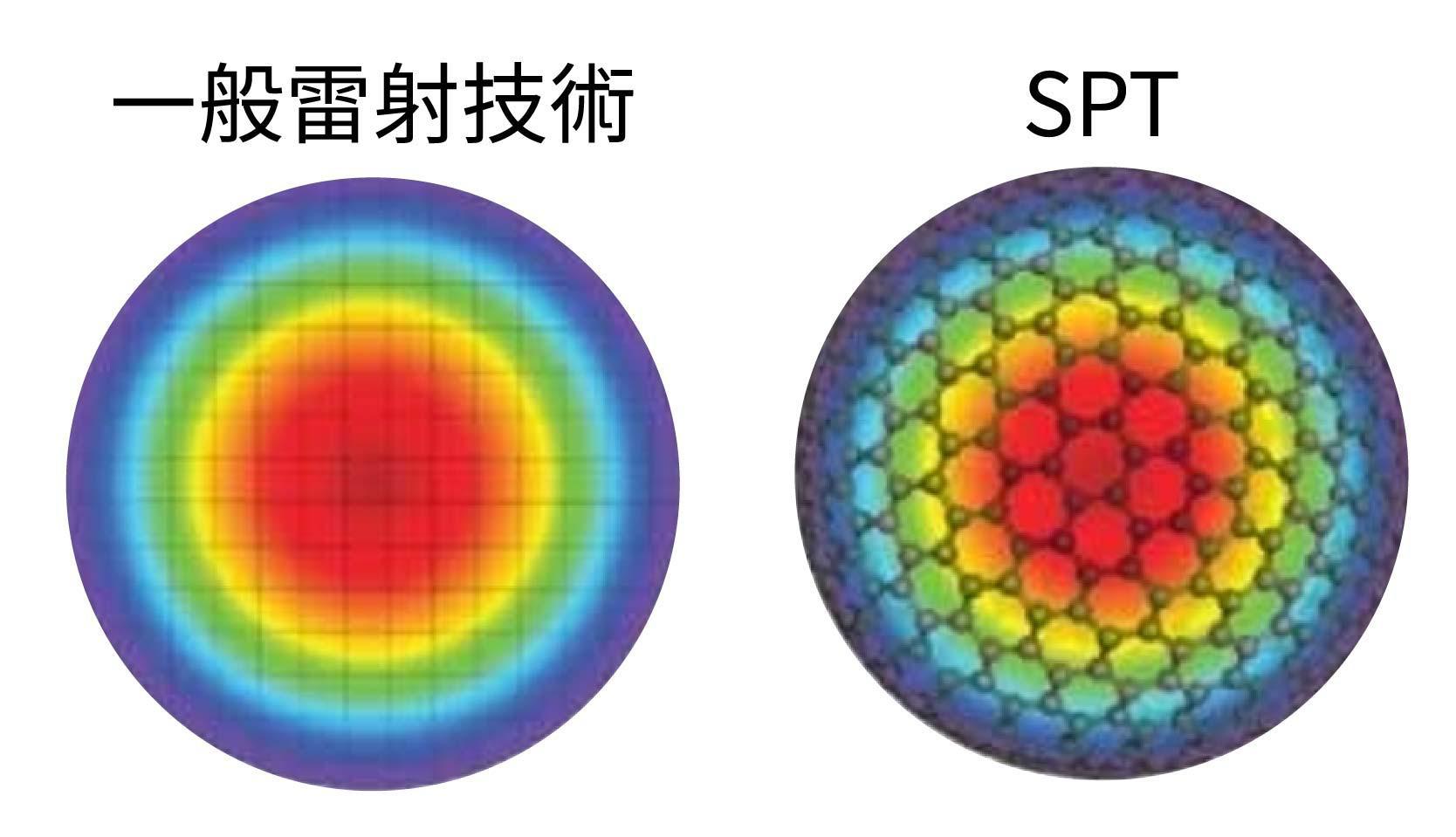 眼球畢竟非平面而是球狀,SmartPulse(SPT)施打光束能依照角膜弧度形成緊密連接的六角形,好比蜂巢、足球組成方式,較傳統2D方式更為均勻、平滑、穩固。