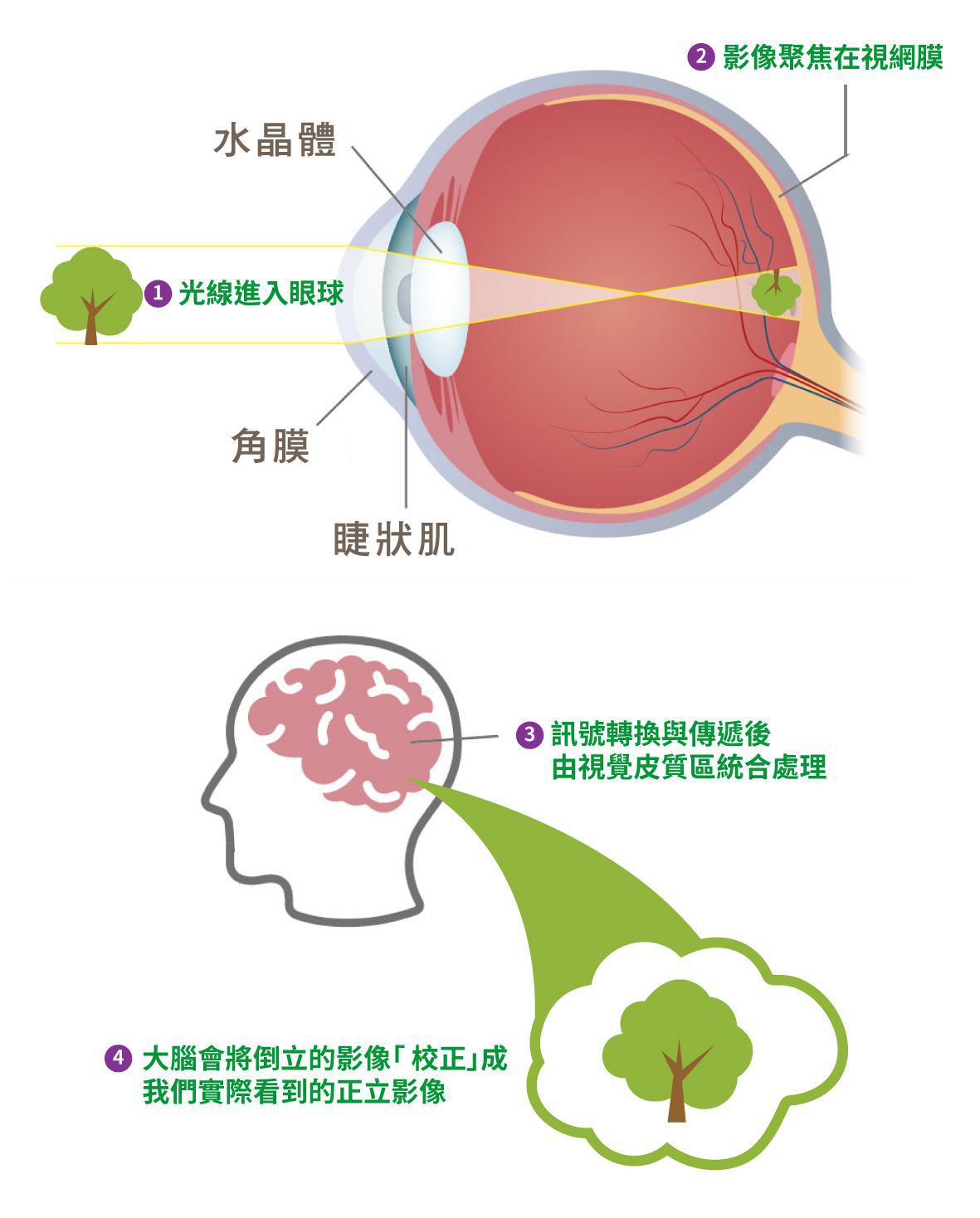 2. 影像聚焦在視網膜,此時影像呈現倒立