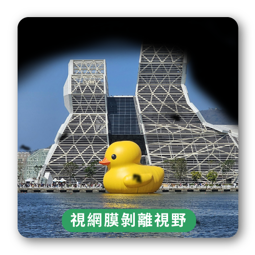 高度近視者的眼球被擴大拉長,眼球壁變薄也愈脆弱,先會產生破洞,再慢慢滲水至視網膜下方產生剝離現象。
