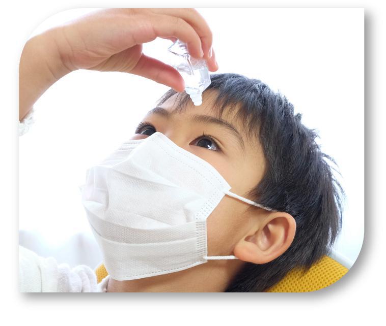 為目前實證唯一有效的藥物,散瞳導會有畏光及視近模糊症狀,建議以低濃度為優先治療選擇,使用0.01%阿托平眼藥水,每晚睡前一滴,如每半年或一年增加在50度以上,建議調高阿托平濃度順序為0.1%、0.25%、0.5%,最高為1%。