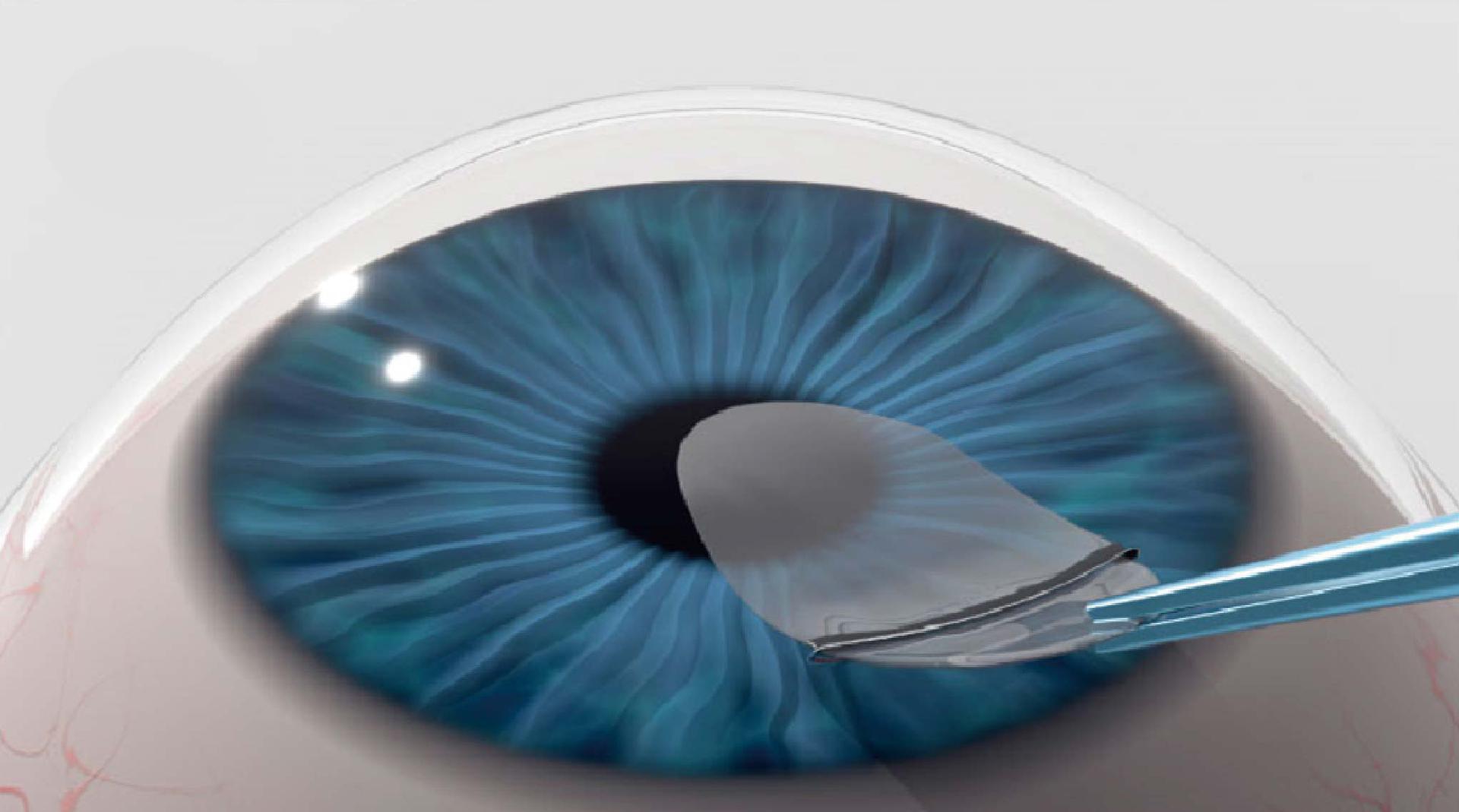 低能量奈米級雷射將透鏡上下層分離,依眼睛條件製作取鏡通道。
