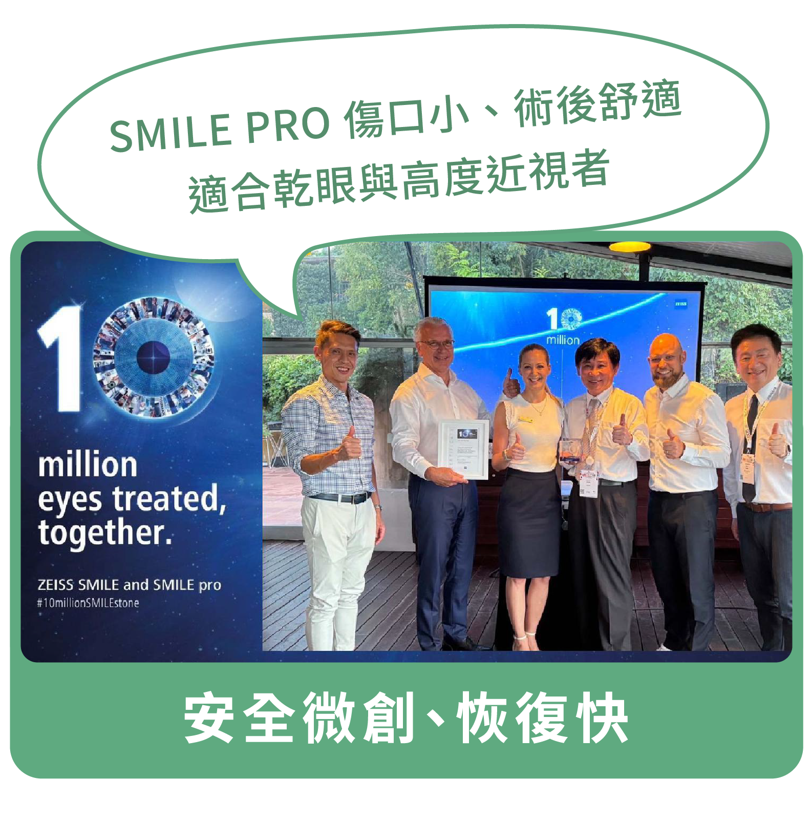 | 引進德國蔡司全新 SMILE PRO 2.0機型,雷射更快、更舒適。