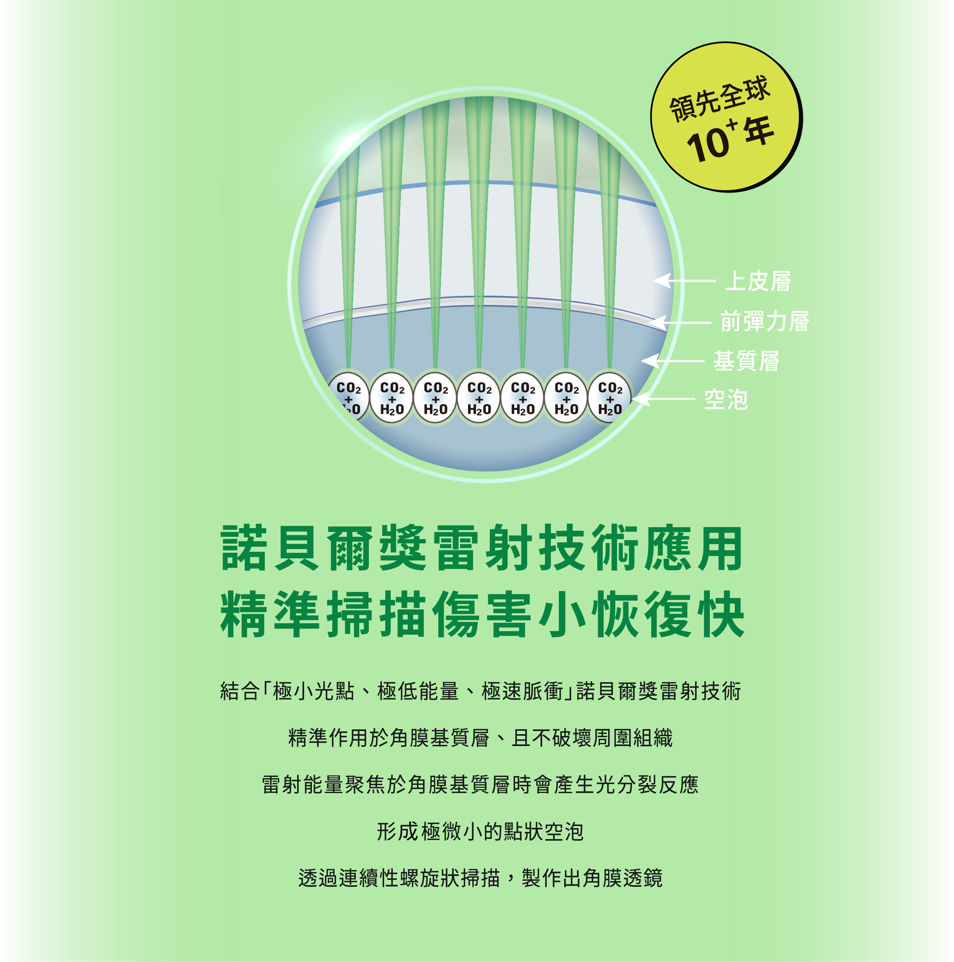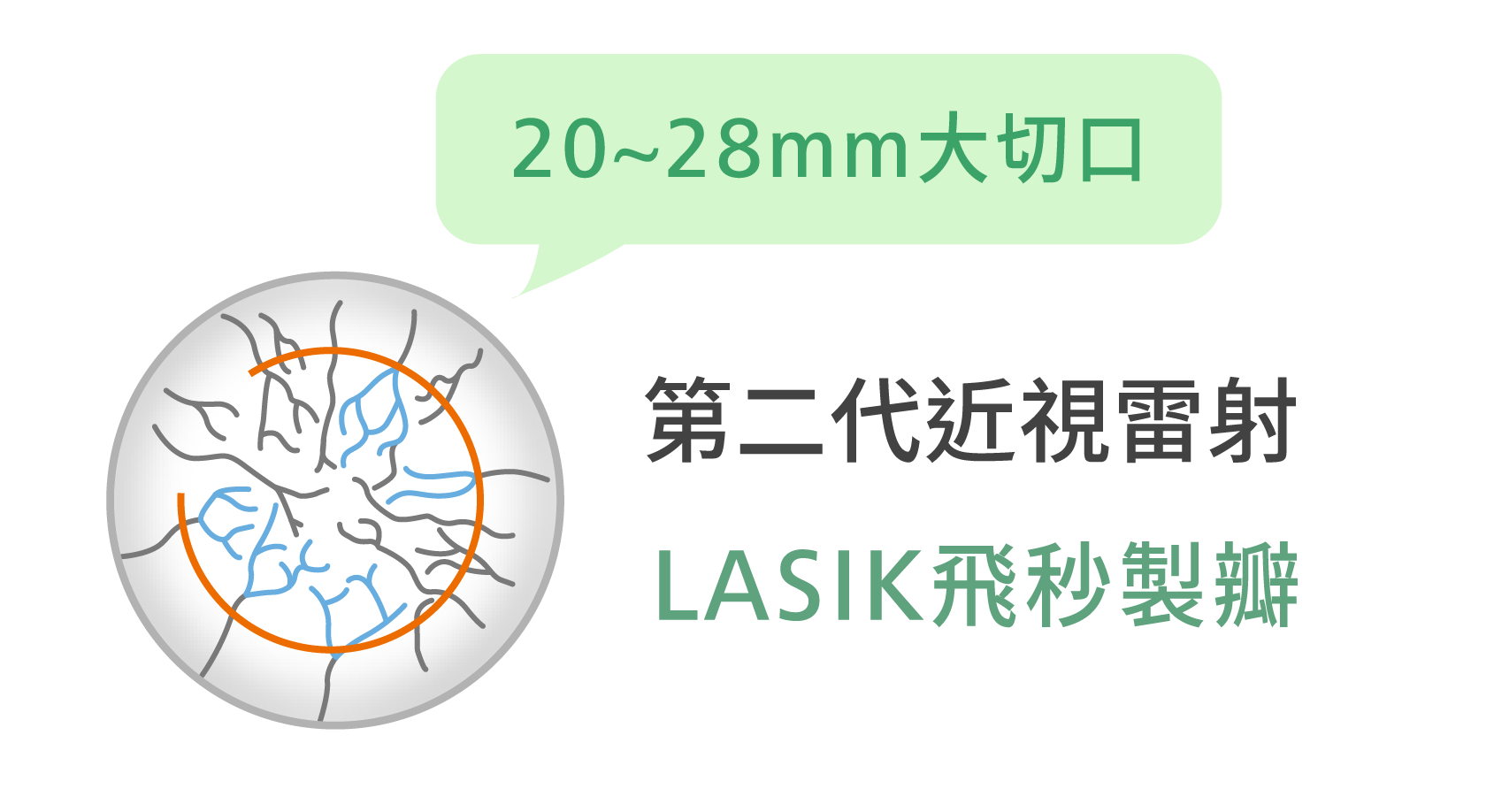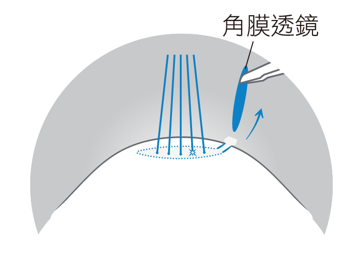 角膜表面下方利用全飛秒,雷射出超薄專利邊切透鏡。