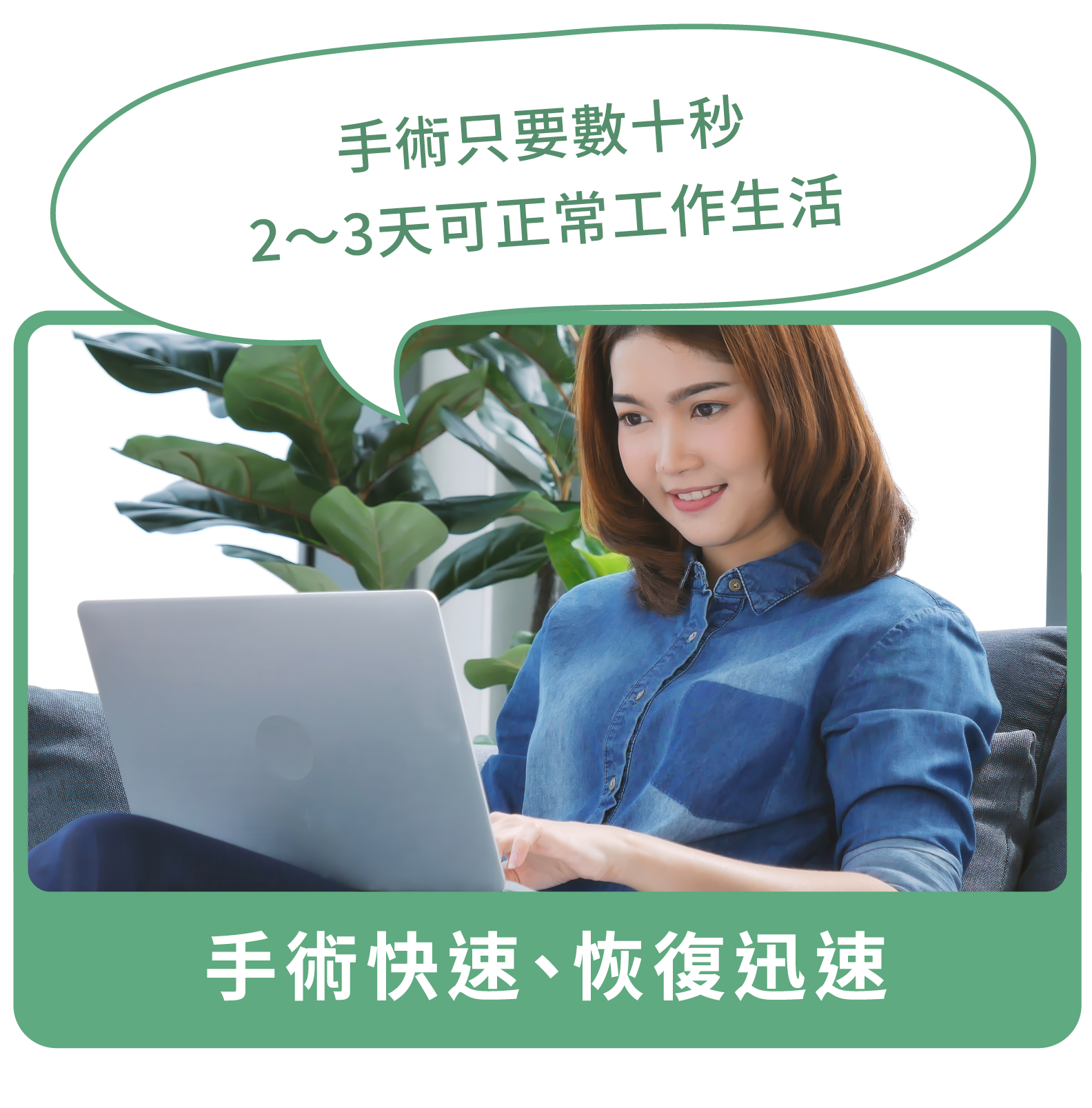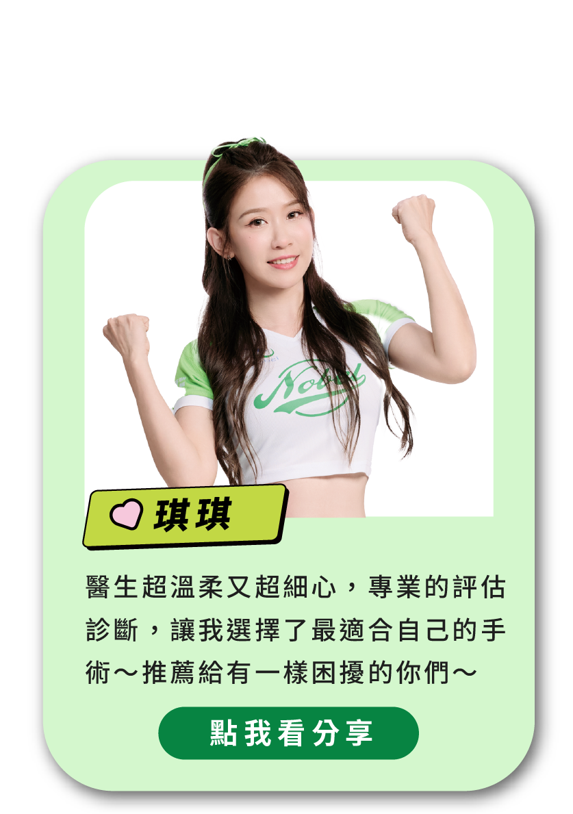| 手術全程使用無刀微創技術,恢復期短、異物感低。