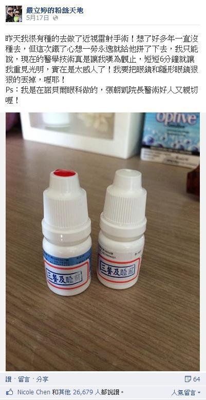Ps:我是在諾貝爾眼科做的,張朝凱院長醫術好人又親切喔!
