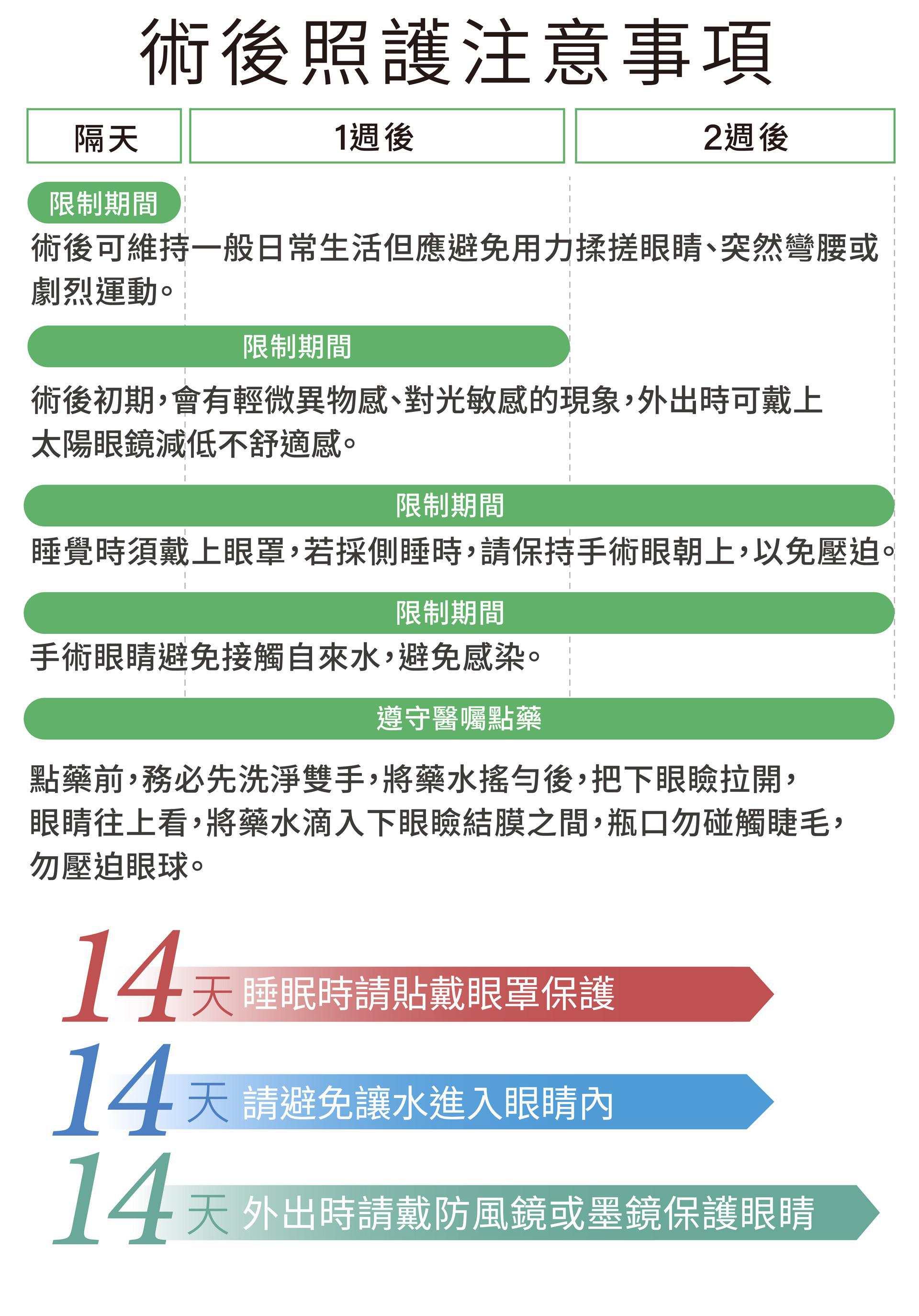 ▪︎ 術後可維持一般日常生活但應避免用力揉搓眼睛、突然彎腰或劇烈運動。