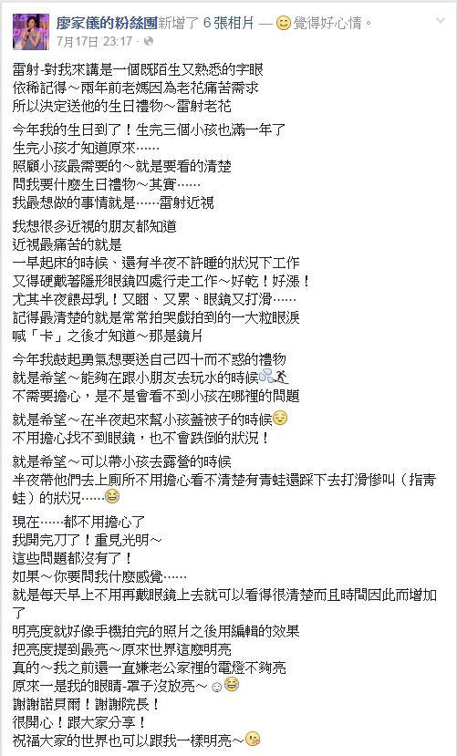 就是每天早上不用再戴眼鏡上去就可以看得很清楚而且時間因此而增加了