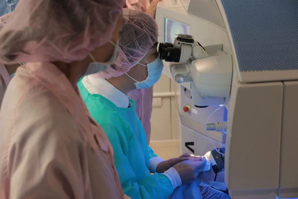 其實手術時,眼睛會完全被覆蓋在機器之下,眼睛只看得到一個綠色的點,會感覺的到角膜有輕微被拉住的感覺,但是完全不會痛。