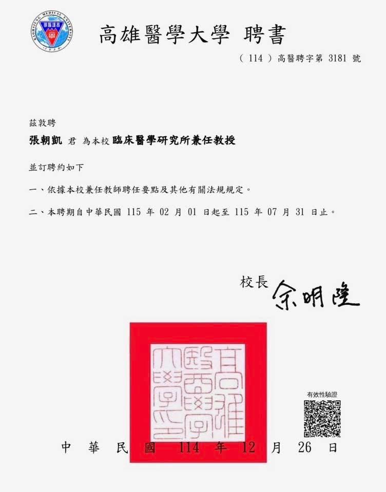 高雄醫學大學 臨床醫學研究所 / 兼任教授