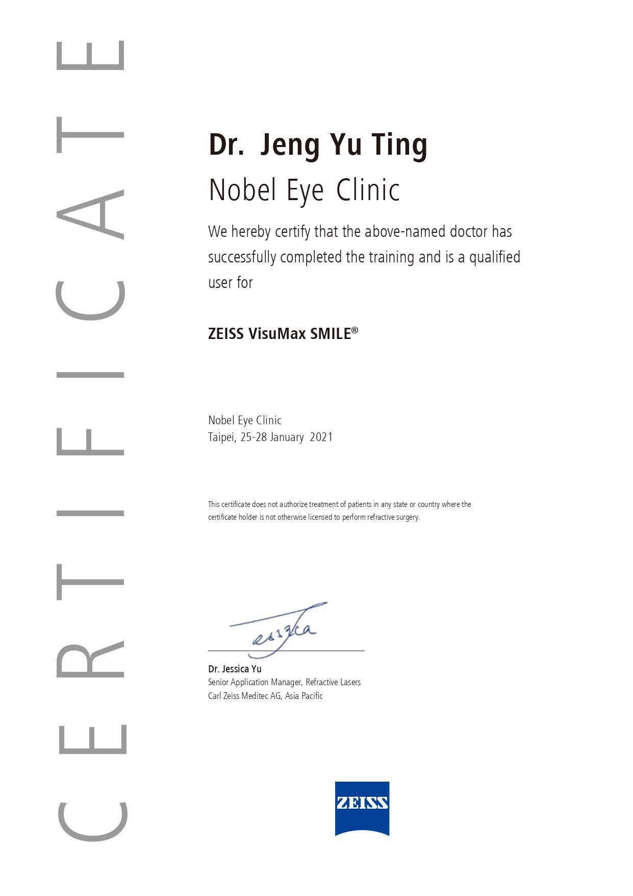 德國蔡司SMILE全飛秒近視雷射原廠認證醫師